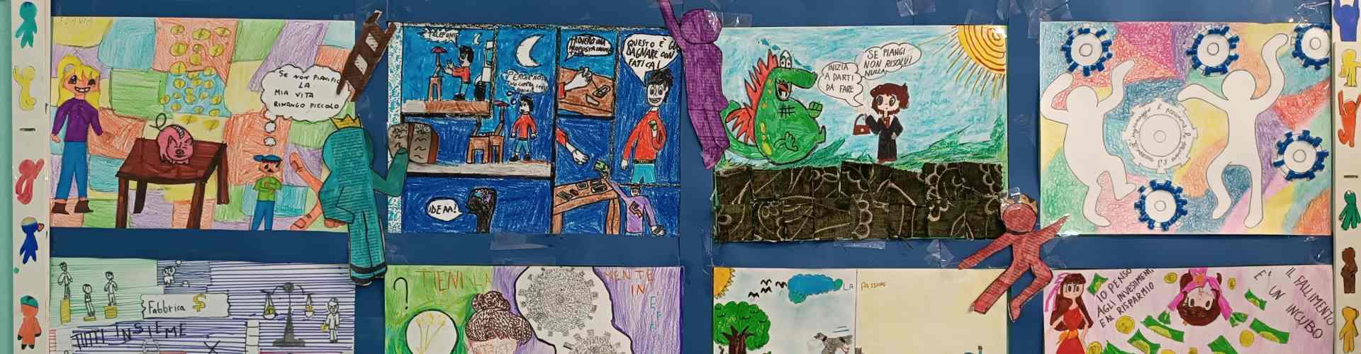 Creatività, fantasia e un pizzico di economia sono stati così gli ingredienti del concorso “Una galleria di classe”. Gli alunni si sono cimentati con diverse tecniche pittoriche ed espressive, che hanno dato vita a una vera e propria galleria d’arte con tanti elaborati originali raffiguranti tematiche economico-finanziarie.